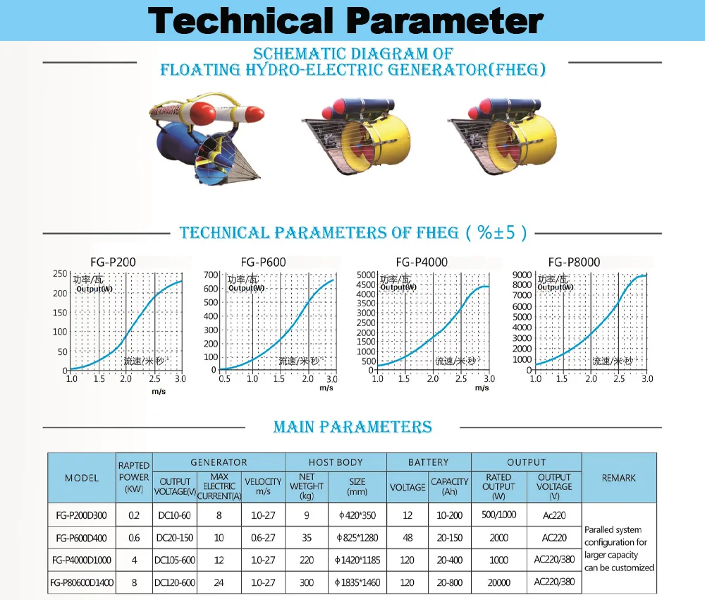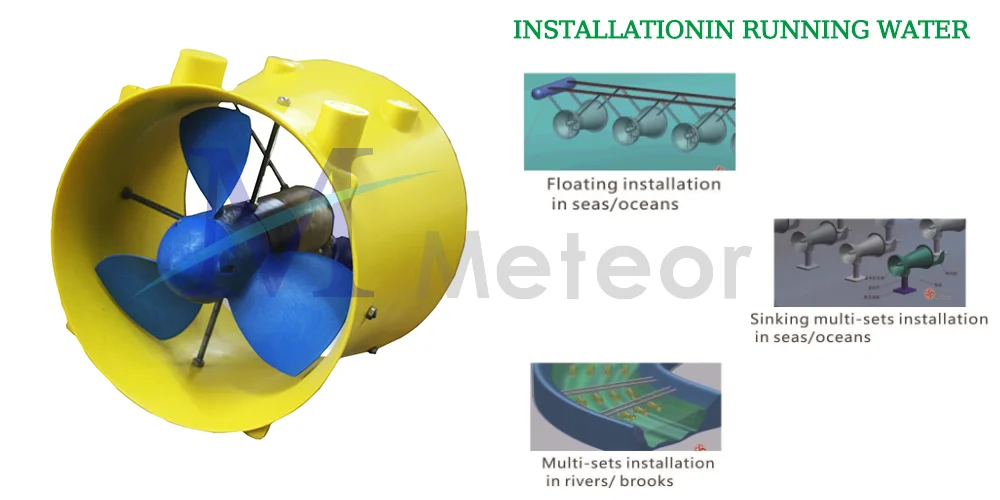 Floating tube hydroelectric generator is the latest horizontal flow hydroelectric generator that directly utilizes natural water flow power such as ditches, creeks, rivers, and ocean currents without the need for water interception and dam construction. It accelerates the natural water flow speed into the turbine through a speed increasing device installed in the water flow, impacts the turbine, drives the generator, and emits high-efficiency electricity. Due to the doubling of the water flow rate inside the machine, the water and electricity conversion capacity has been greatly improved, which not only significantly reduces manufacturing costs and improves overall cost-effectiveness, but also enriches the available water resources.