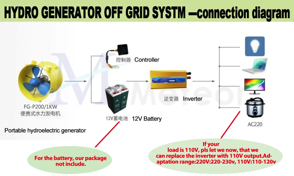 - Model: 12V 200W Hydraulic generator portable power generators Electrici